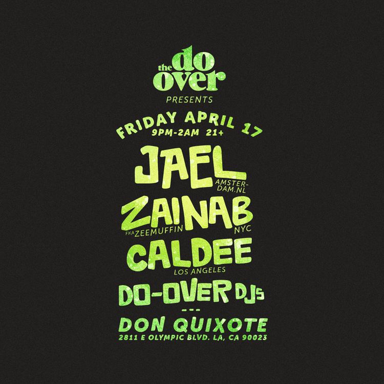 On Friday, April 17, The Do-Over brings a special night of global sounds to Don Quixote in Los Angeles featuring JAEL (Amsterdam) alongside ZAINAB (fka ZEEMUFFIN), CALDEE, and The Do-Over DJs.